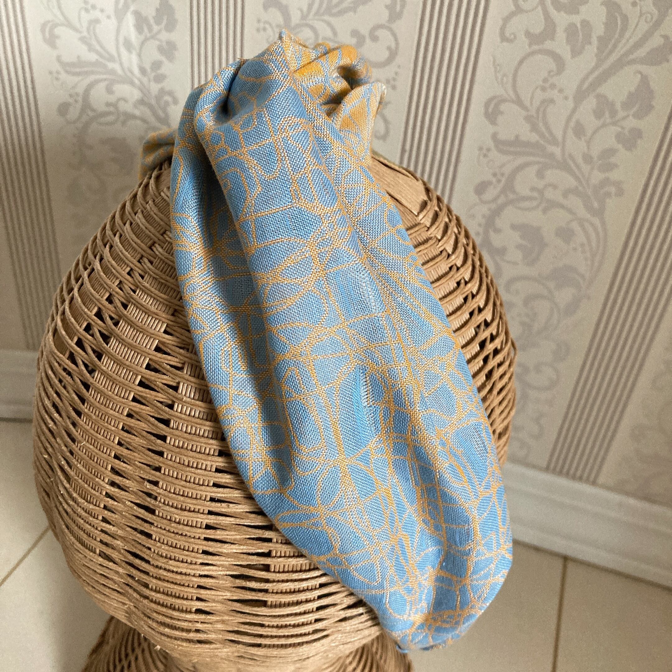 水色、山吹色で織られた柄。